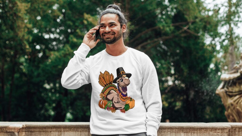 Bring pure joy to your holiday wardrobe with this cozy sweatshirt adorned with our Thanksgiving Camel. He’s equal parts adorable and ridiculous, and that’s exactly why you’ll love him.